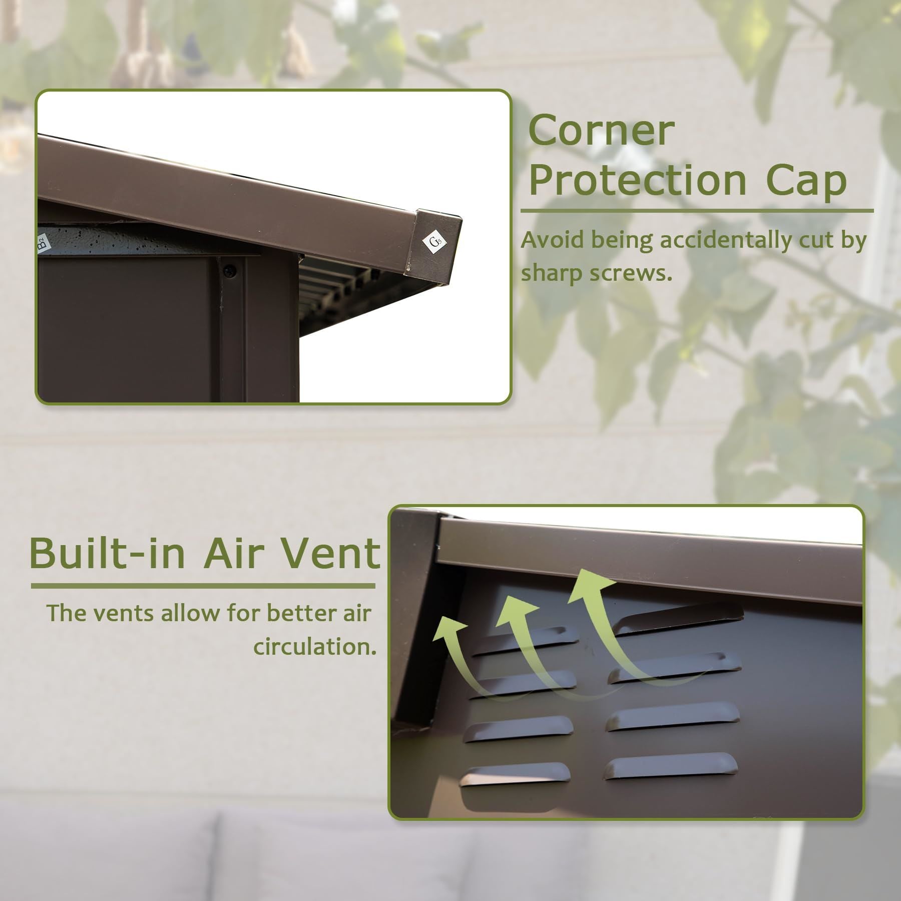PREMIUM FRAME MATERIAL- Outdoor storage shed is made of high-quality galvanized steel, which is rustproof and UV proof, The overlapping wallboard has waterproof and moisture-proof functions, worry-free for all weather conditions use.