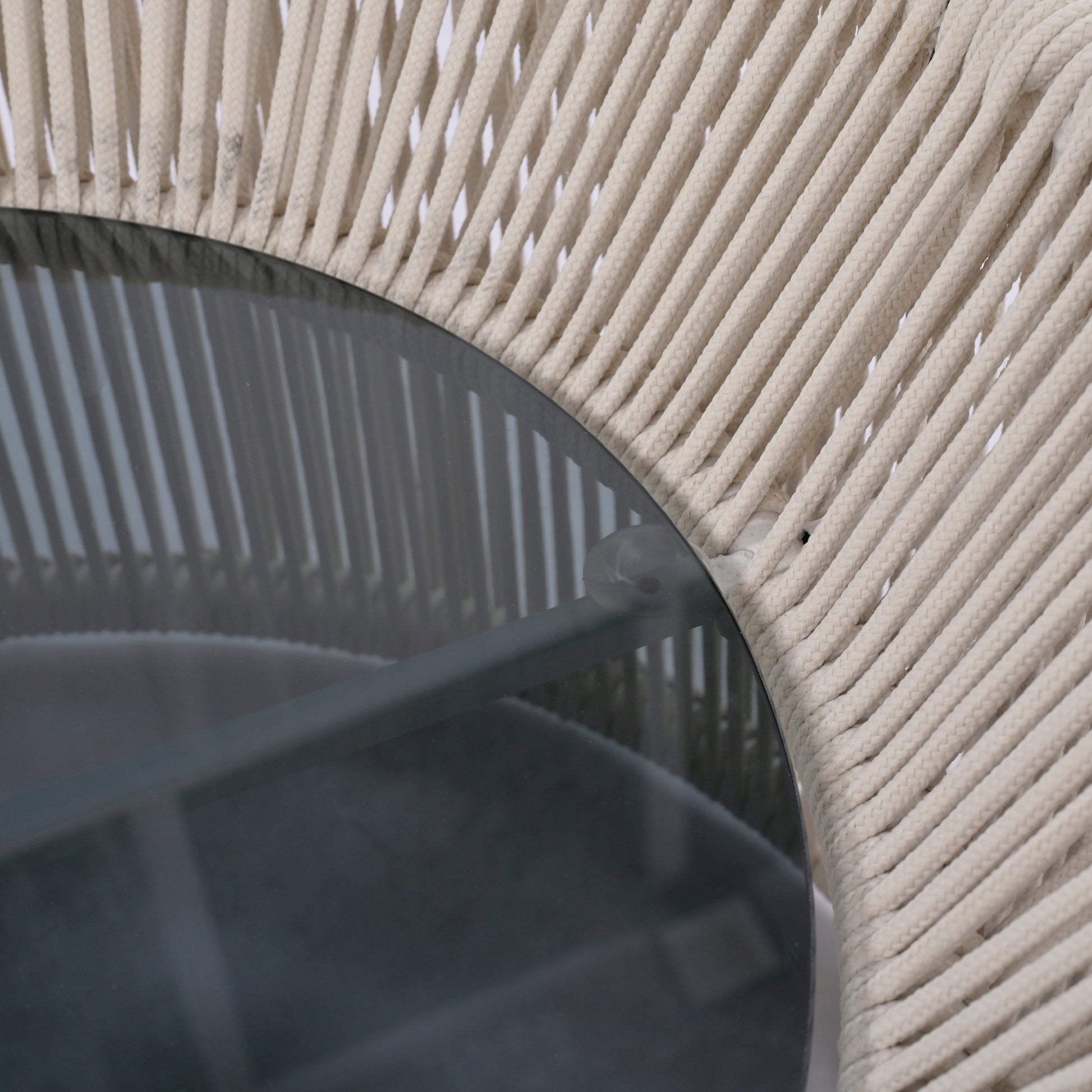 Elegant Coffee Table: This table has a steel frame and an outer layer crafted from PP rope. The embedded black glass looks fashionable and high-grade and is not easy to slide and damage. Perfect for keeping a cool drink or your latest reads in easy reach, and that's super easy to wipe down after an evening of drinks and snacks.