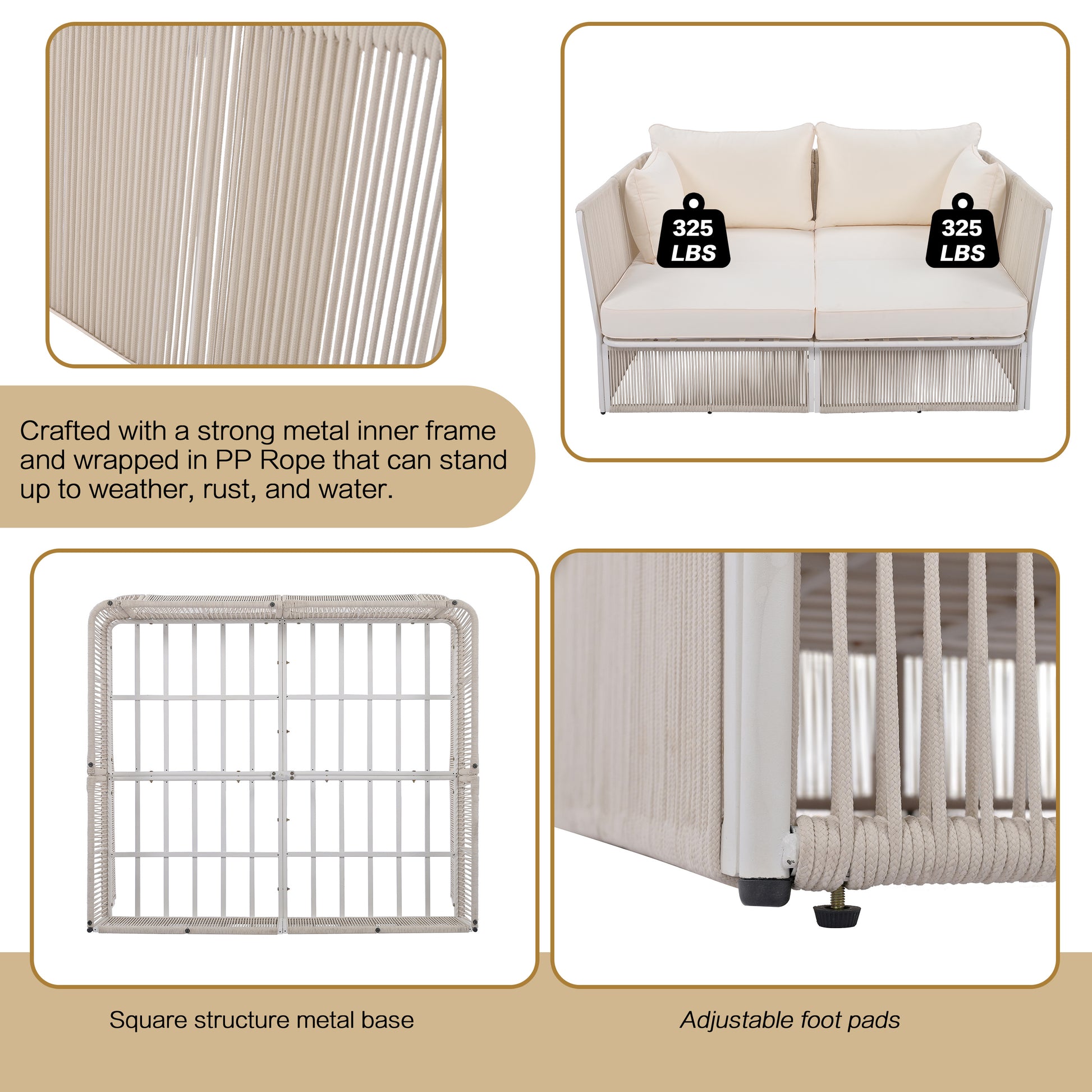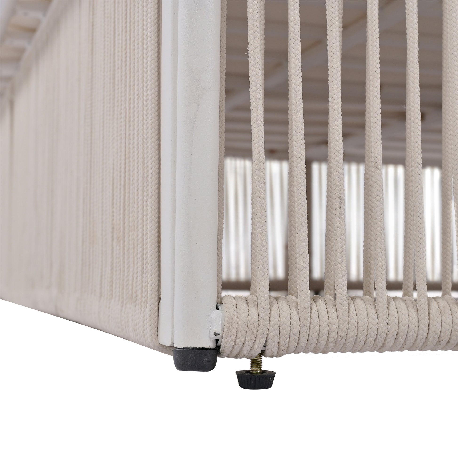Sturdy and Durable: This outdoor daybed provides ample space for 2 to enjoy the accompany of a loved one or stretch out in solitude on this roomy piece. This piece is crafted with a strong metal inner frame and wrapped in PP Rope for a design that can stand up to weather, rust, and water, adding both style and longevity to the outdoor daybed. Composed of a square structure metal base, this bed can carry 650 pounds of excellent weight. The bottom adjustable foot pads can help to maintain balance.