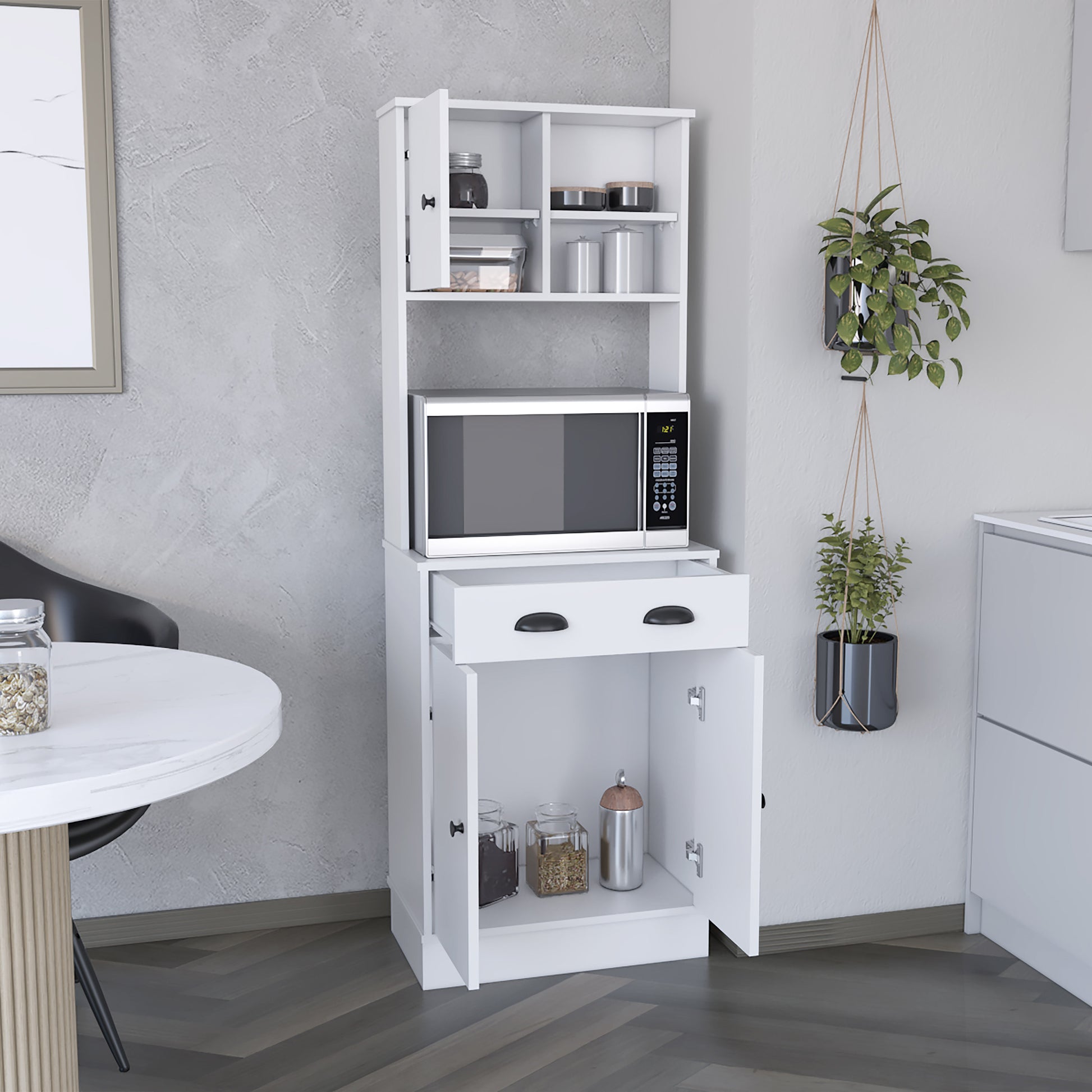 DEPOT E-SHOP Selmer Pantry Cabinet with Drawer and 3-Doors, White