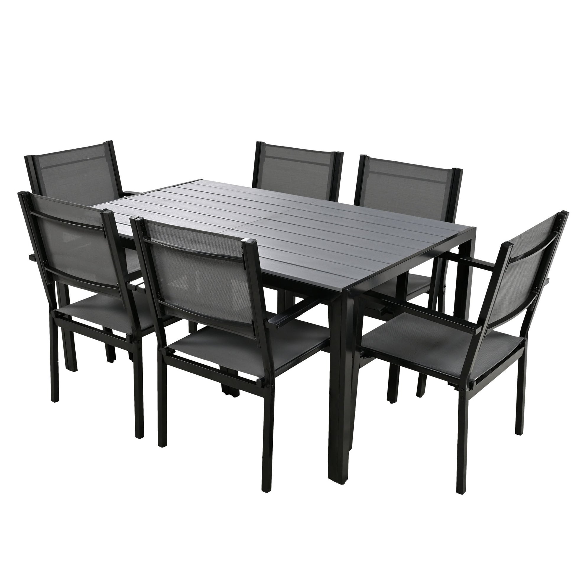 Items Included 1 Table+6 Single Chair Table Material Steel+Plastic Frame Material Steel Table leg material Steel Chair Material Iron+Textile Table Top Weight Capacity 352.7 lbs Single Chair Capacity 396.8 lbs Single Chair Net Weight 11.02 lbs Table Net Weight 55.12 lbs Supplier Intended and Approved Use Residential Use Country of Origin Vietnam