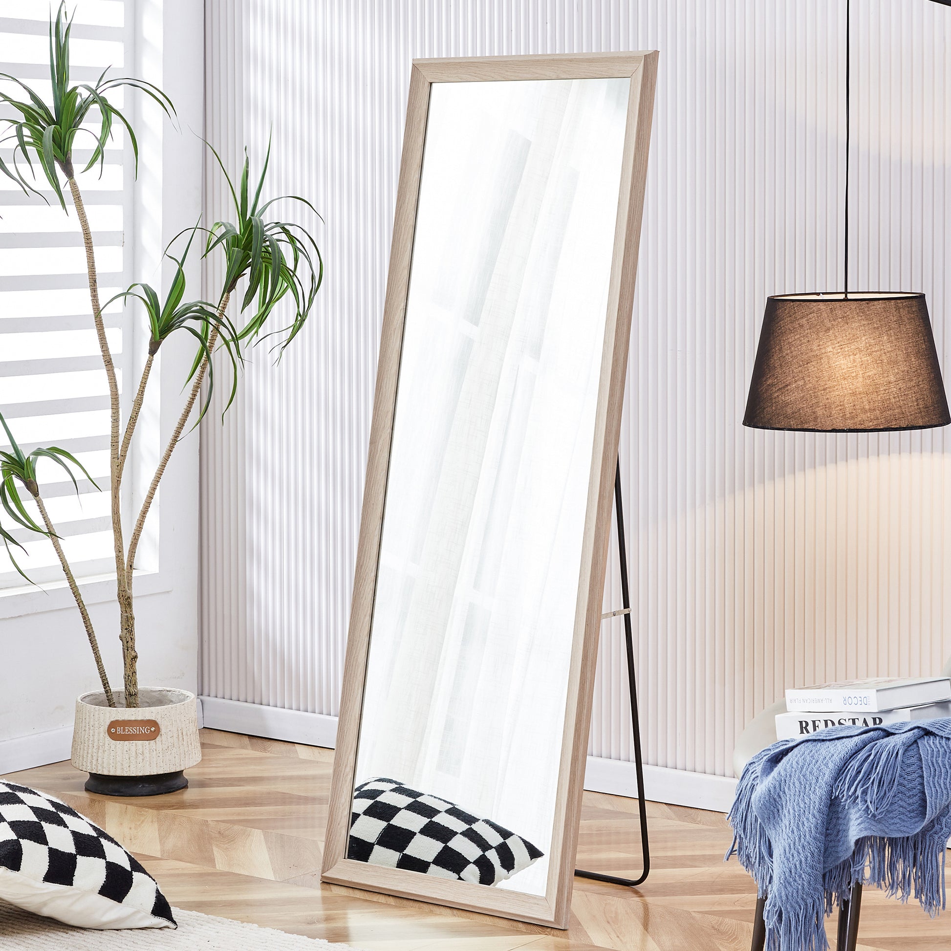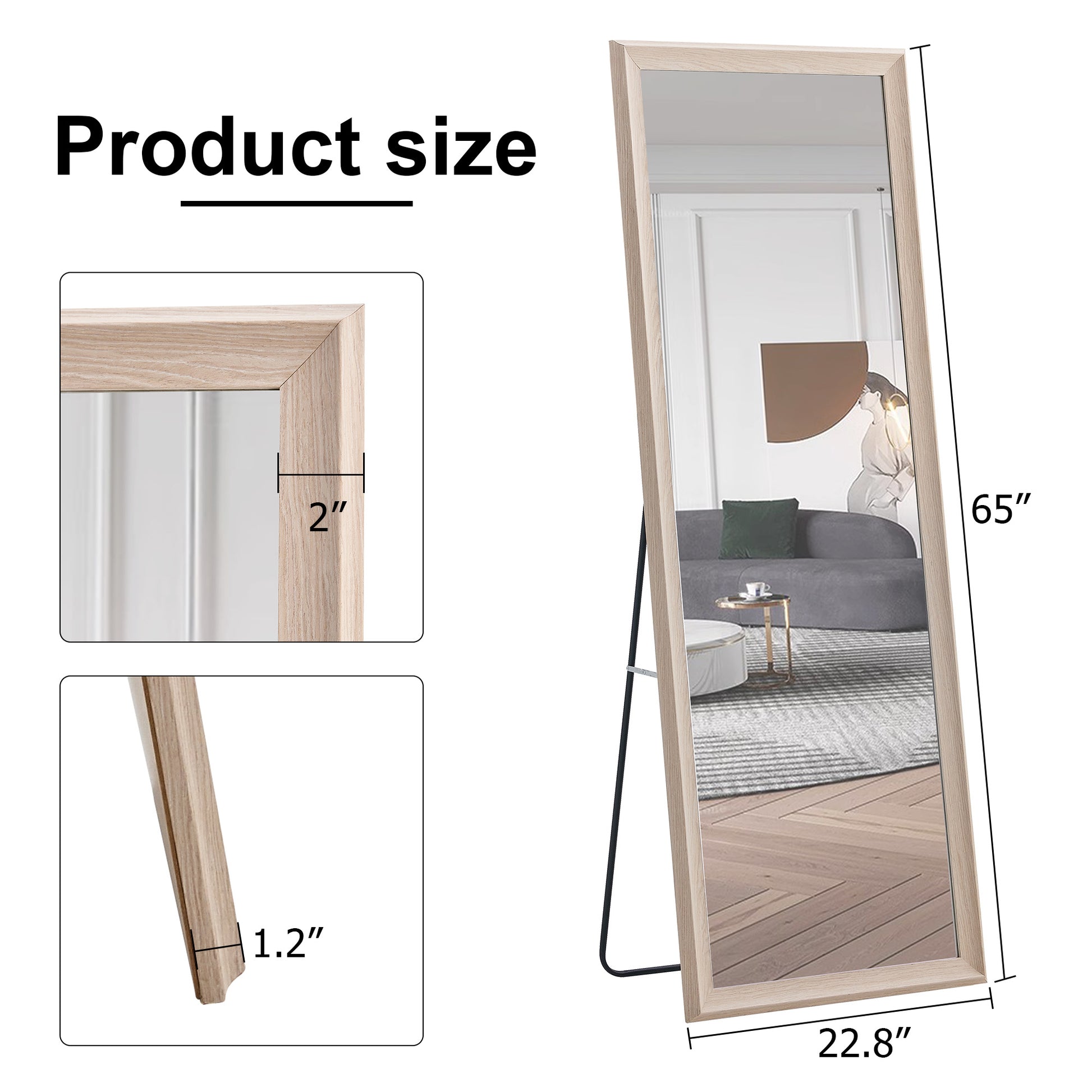 Third generation, light oak solid wood frame full-length mirror, large floor standing mirror, dressing mirror, decorative mirror, suitable for bedrooms, living rooms, clothing stores 65"*22.8"