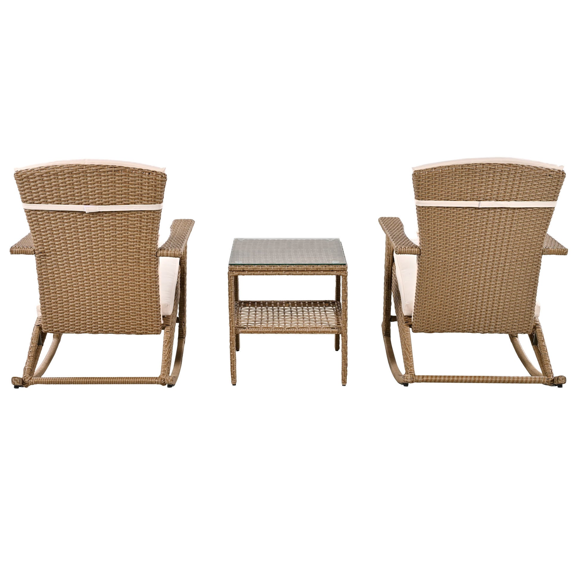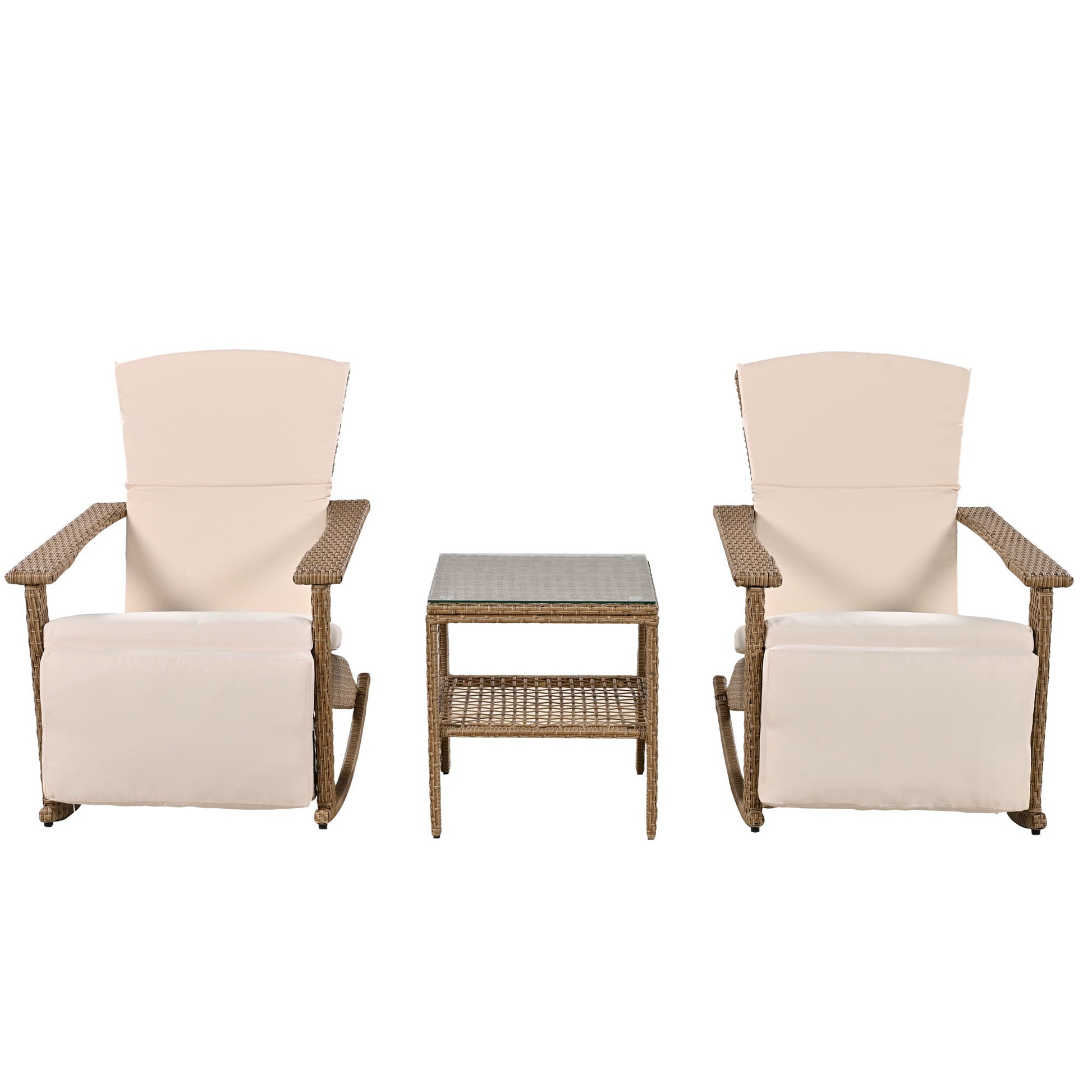 U_Style Adjustable Outdoor Wicker Double Rocking Chair with Coffee Table, Suitable for Backyard, Garden, Poolside.