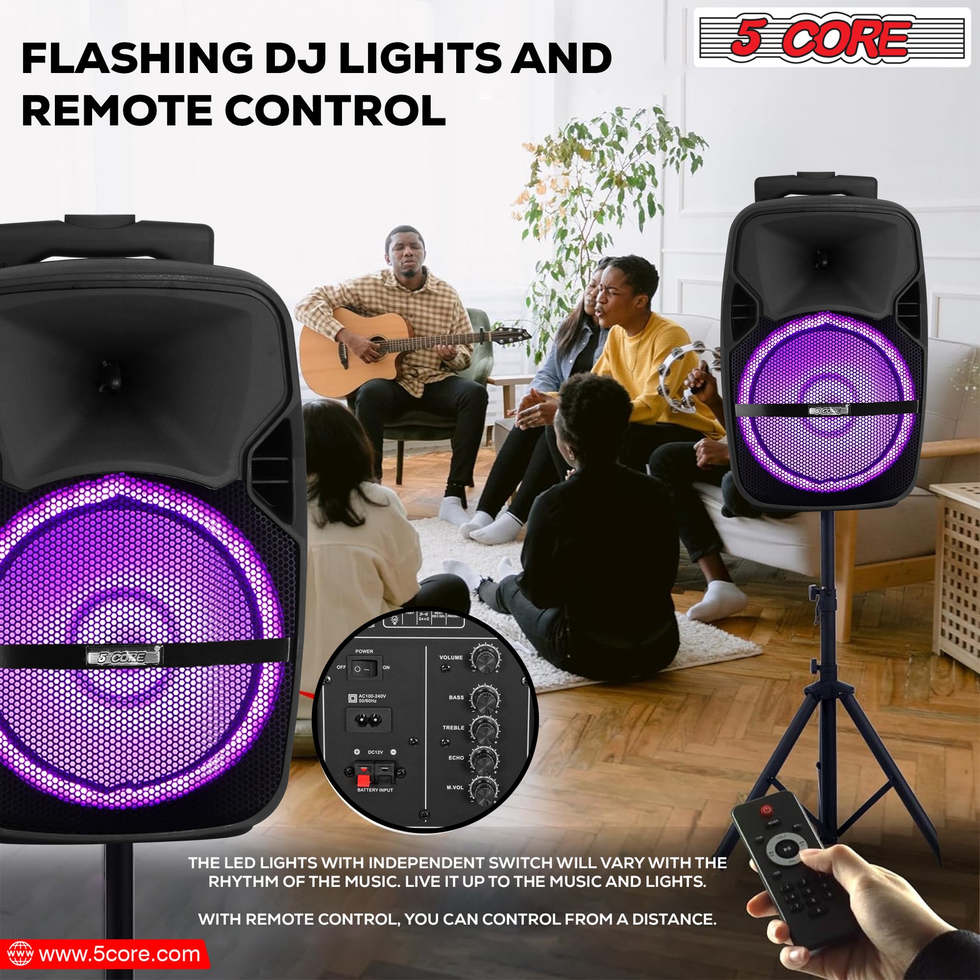 5 Core DJ speakers 8" Rechargeable Powered PA system 250W Loud Speaker Bluetooth USB SD Card AUX MP3 FM LED Ring - ACTIVE HOME 8 2-MIC