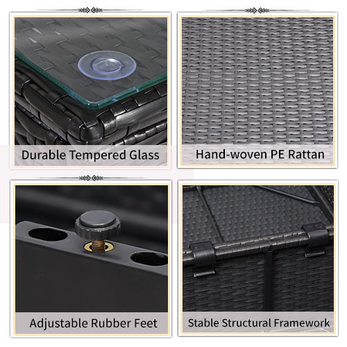 1.7 Pieces Outdoor Patio Sectional Sofa Couch, Black Wicker Furniture Conversation Sets with Washable Cushions & Glass Coffee Table for Garden, Poolside, Backyard