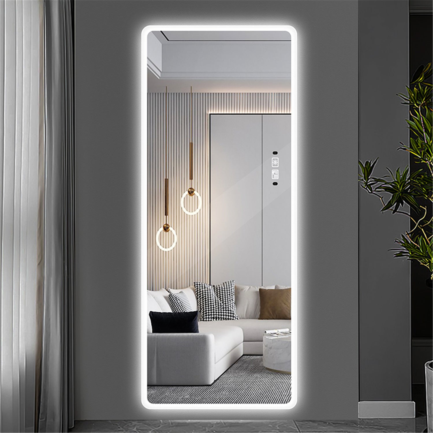 Full Length Mirror Lighted Vanity Body Mirror LED Mirror Wall-Mounted Mirror Intelligent Human Body Induction Mirrors Big Size Rounded Corners, Bedroom,Living Room,Dressing Room Hotel