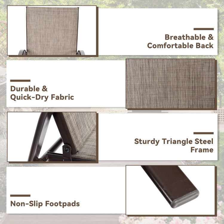 ● Sturdy and Stable Construction: Crafted with a powder coated steel frame, this patio chair is sturdy and solid which has a long lifespan. The premium fabric of seat is durable enough to stand the test of time. What's more, the legs with non-slip foot pads form a triangle with ground, increasing the stability.