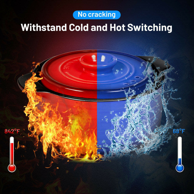 Compatible with gas stove and ceramic hot plateLid with raindrop design accelerates inner circulationCrafted with premium ceramic material for long time useDesigned with cool insulated handles for easily moving the potCeramic retains the heat to warm the food and keep the original flavorCompact size for small areas such as RV, apartment, kitchen, and moreWithstand the cold and hot switching and high temperature up to 842°FPerfect for various dishes, such as chicken, porridge, soup, casseroles, etc