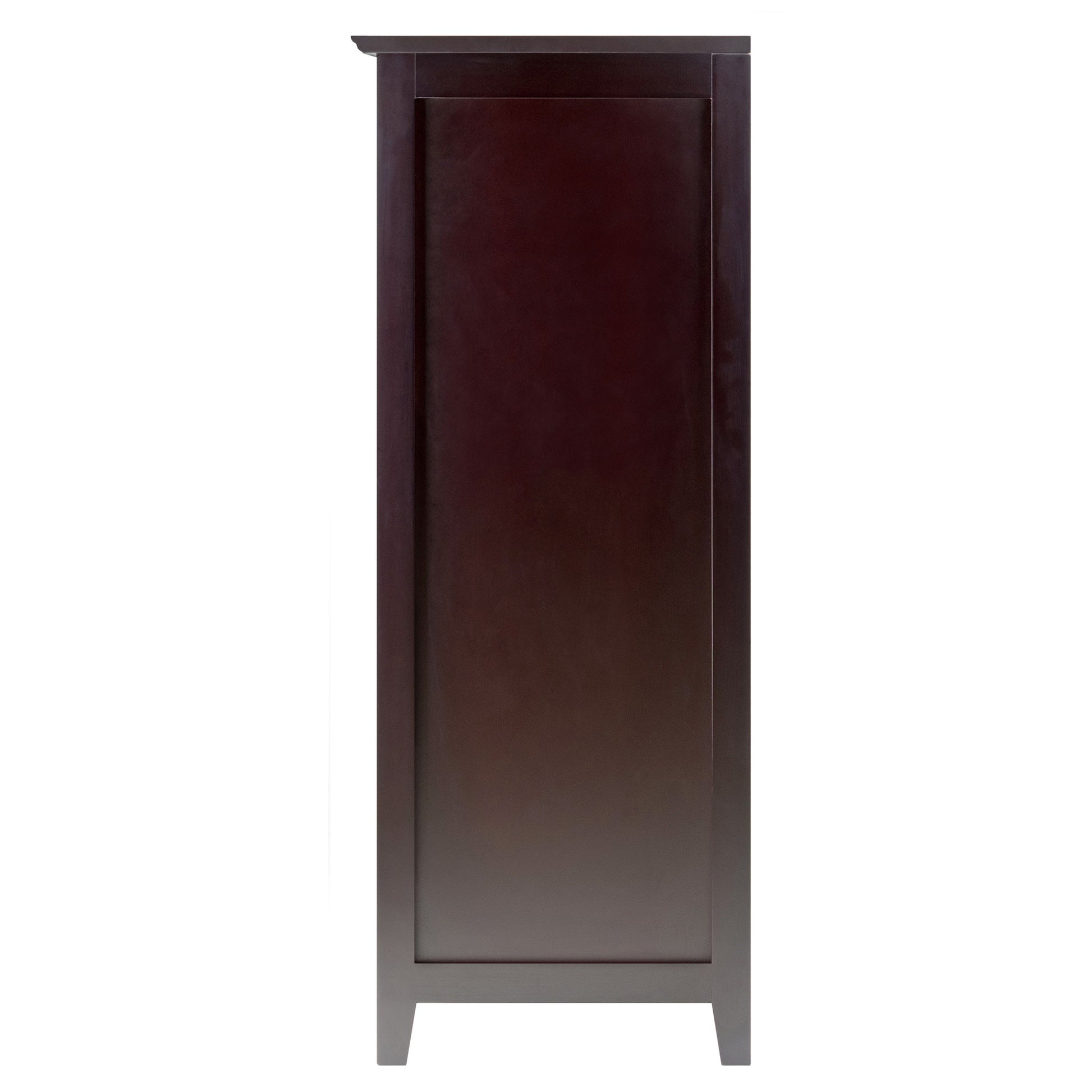 Bordeaux Modular Wine Cabinet with X Shelf is a great addition to your home. The simple design has straight lines and a dark finish. Perfect storage piece for the wine enthusiast. The cabinet provides spacious single drawer for your accessories; storage shelf and X shelf for your wine bottles. Create a wine storage system with additional units and sit side by side. Opens glass door to an open shelf for your glasses or sprits. Lay your wine bottles nicely with this X Shelf can store up to 24 bottles. Clear Glass Door with dark wood frame. Overall assembled size is 22.6"W x 15.75"D x 40"H. Cabinet is made with combination of solid and composite wood in espresso finish. Assembly Required.Glass door opens to shelf and wine storage with this X Shelf can store up to 24 bottles.Perfect storage piece for the wine enthusiast. Overall assembled size is 22.6"W x 15.75"D x 40"H.Cabinet is made with combination of solid and composite wood in espresso finish. Assembly Required.nullnullnull This product meets the oversized requirement per UPS/FedEx. The shipping weight reflected is the dimensional weight. This product also meets the large package requirement per UPS/FedEx. The estimated shipping cost will include this fee. Large package is $70.00; applied when length plus girth [(2 x width) + (2 x height)] combined exceeds 130 inches. Additional Handling charge of $10.50 applied where a package's longest side exceeds 48 inches in length; the second longest side exceeds 30 inches in length; or total weight is greater than 70 lbs.This product meets the oversized requirement per UPS/FedEx. The shipping weight reflected is the dimensional weight. This product also meets the large package requirement per UPS/FedEx. The estimated shipping cost will include this fee. Large package is $70.00; applied when length plus girth [(2 x width) + (2 x height)] combined exceeds 130 inches. Additional Handling charge of $10.50 applied where a package's longest side exceeds 48 inches in length; the second longest side exceeds 30 inches in length; or total weight is greater than 70 lbs.
