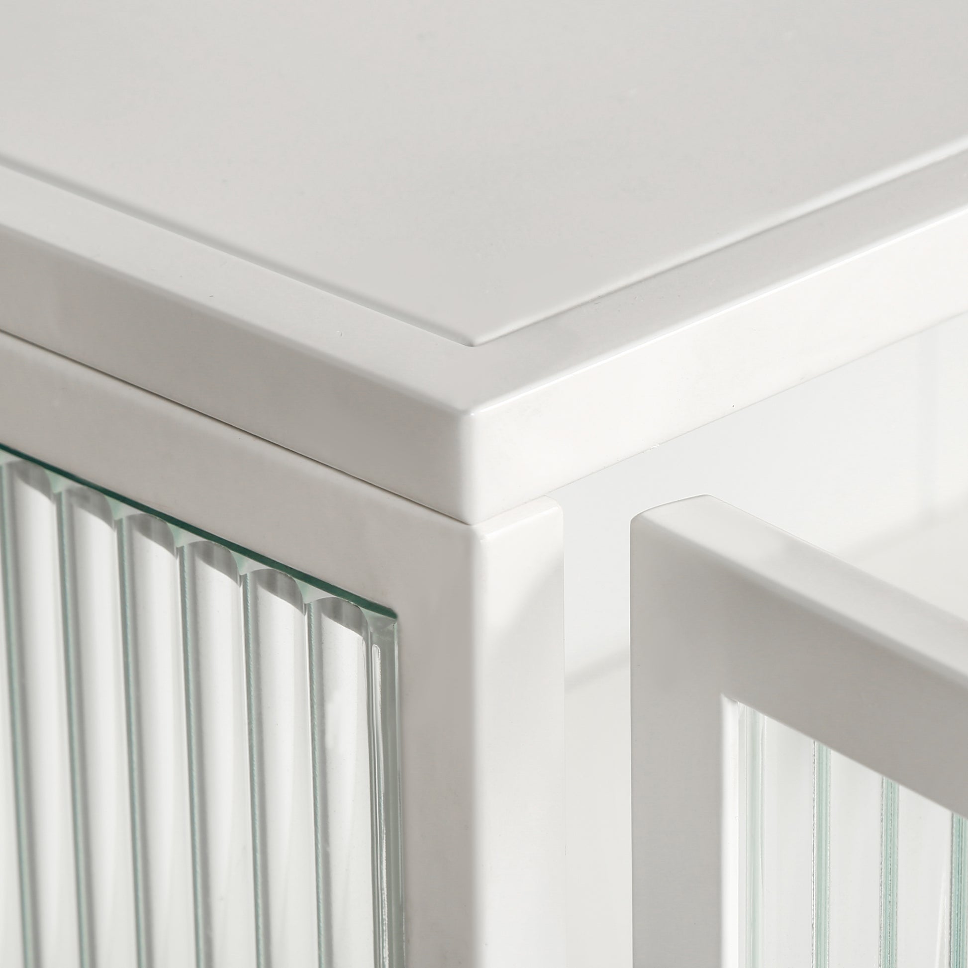 2.Selected Materials:It's made with Iron+tempered glass, combined with meticulous craftsmanship, the connection between accessories is compact, and the sideboard is stable and durable. Sturdy construction gives exceptional strength and stability. Effortlessly withstands rust, erosion, and wear. With a fluted glass design which boasts superb light transmission yet non-perspective, this storage cabinet with modern aesthetics is an optimal addition to high-grade home decoration.