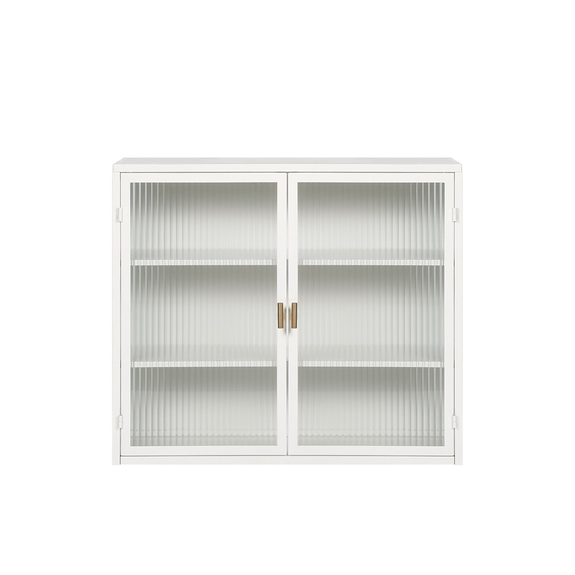 27.56"Glass Doors Modern Two-door Wall Cabinet with Featuring Three-tier Storage for Entryway Living Room Bathroom Dining Room
