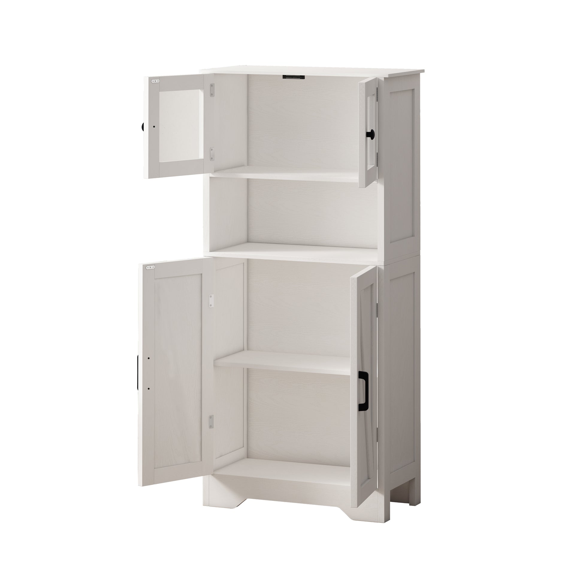 Four Door Storage Cabinets with LED Light, Open Shelf, Display Cabinet with Transparent Acrylic Cabinet Door, Cupboard, for Bathroom,Living Room,Dining Room,Kitchen