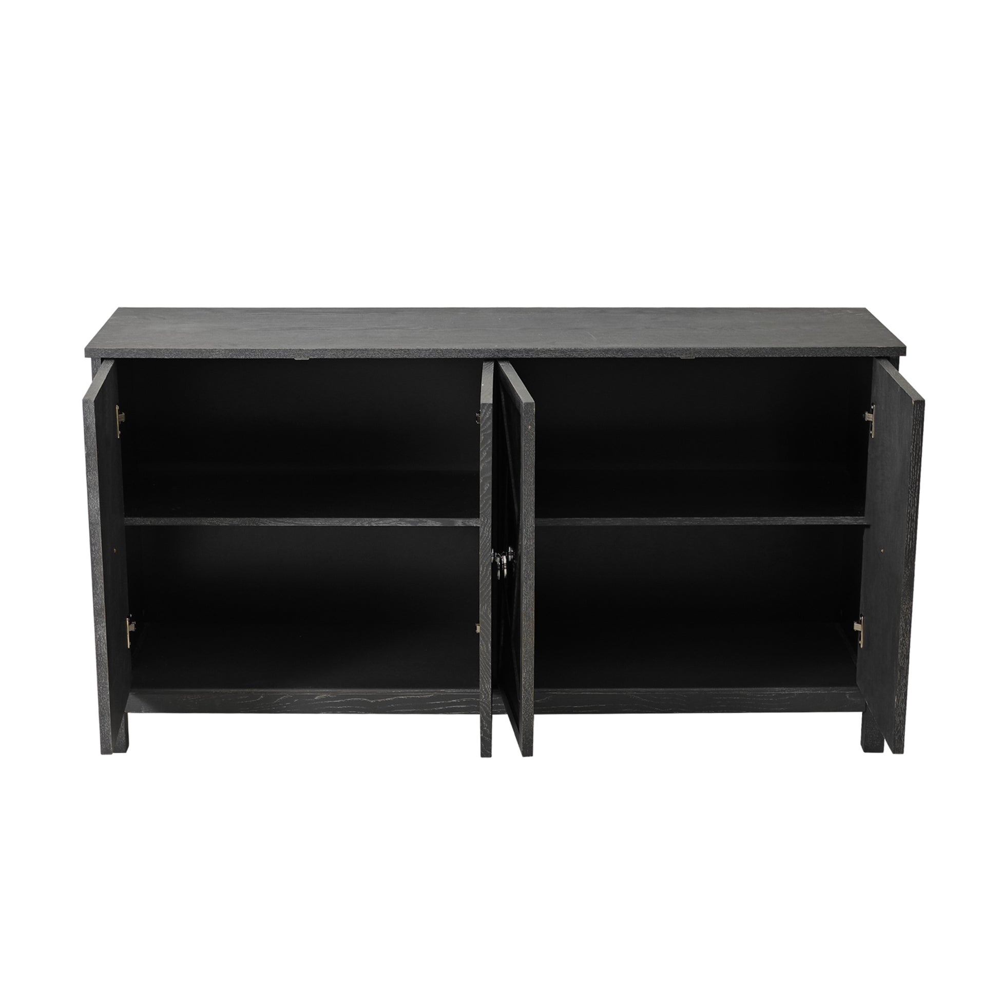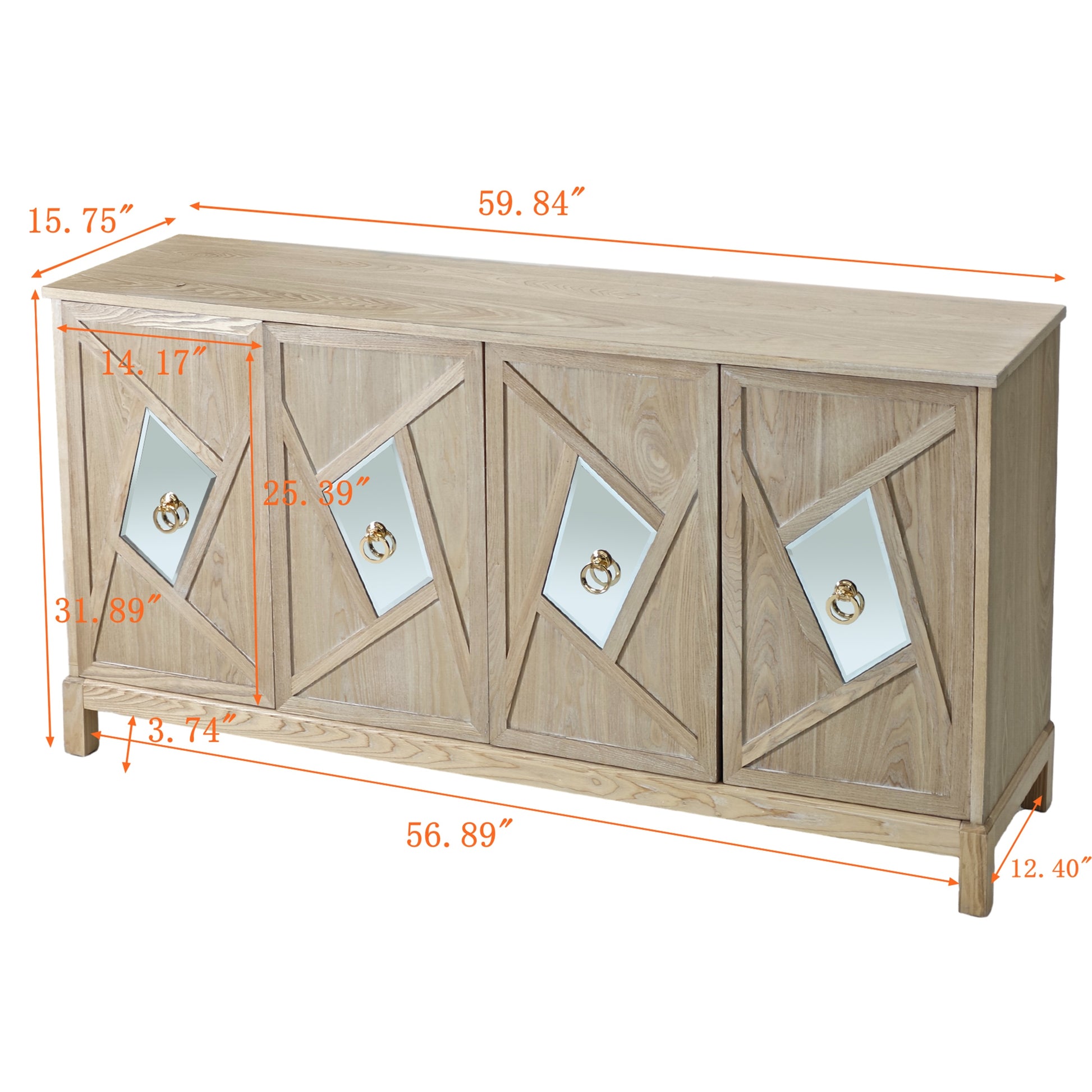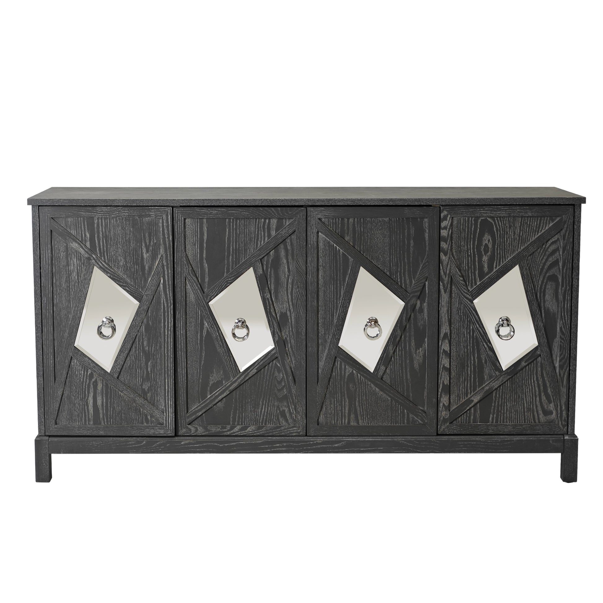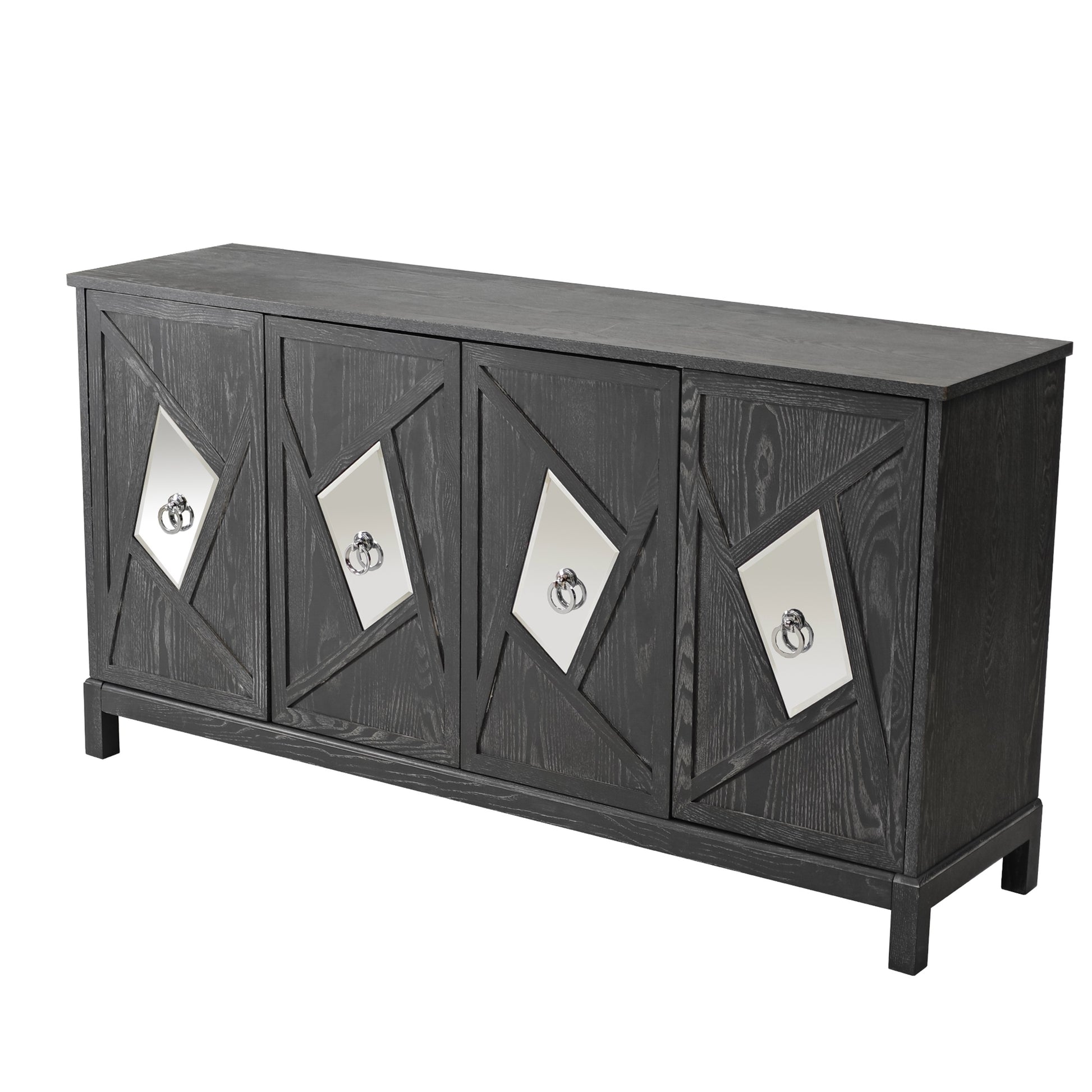 Upgrade your home with our Modern 4-Door Cabinet with Mirrored Decorative Doors and experience the perfect blend of style, functionality, and quality. Make a statement with this eye-catching piece of furniture that will impress your guests and bring a touch of luxury to your living space.Its internal design is reasonable, providing ample storage space to keep your living area tidy and organized.With simple assembly instructions and easy-to-clean surfaces, this storage cabinet is both quick and hassle-free to put together and maintain, saving you time and effort in the long run.The surface of the storage cabinet is treated with waterproofing, which is easy to clean. Even after years of use, it will not fade or damage, maintaining a good appearance.