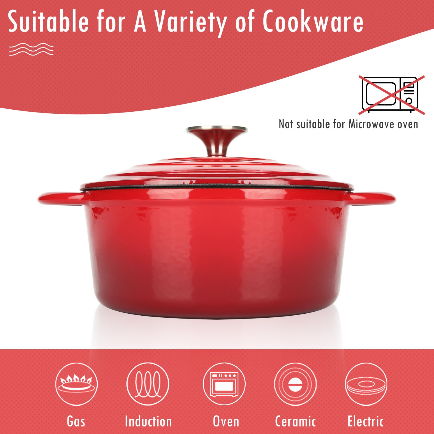 COOKWIN Enameled Cast Iron Dutch ovens are traditionally made with Enameled cast iron—which is fired twice for a durable and visually stunning finish—offers even heat distribution and superior heat retention; it's oven-safe up to 500 degrees Fahrenheit. And it is suitable for