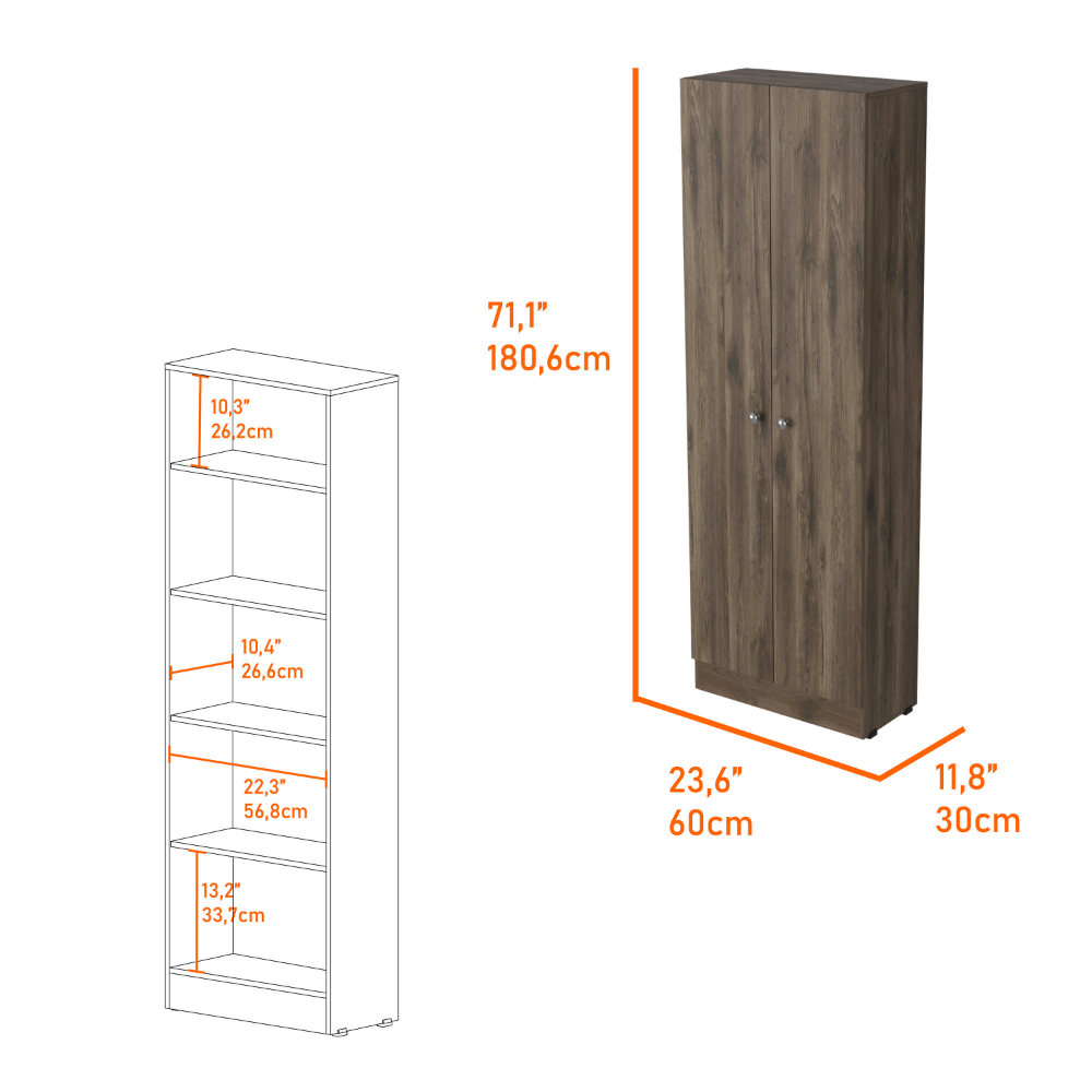 Here's the Ontario Kitchen Set – a complete package with a beautiful kitchen island and pantry. The perfect addition to any home, this set is designed with exclusive manufactured wood in a white-light-gray finish. Whether cooking for one or hosting a big gathering, the Ontario Kitchen Set has everything you need to make mealtime a breeze. The internal storage capacity is perfect for keeping all kitchen essentials within reach. Give your kitchen the makeover it deserves with the Ontario Kitchen Set.This stylish island is perfect for any kitchen, with a large top surface (40,5 "W X 27,5 "D) perfect for meal prep or entertaining. The white-light gray finish is easy to care for and will make your kitchen look its best. The modern style impresses your guests, and the three spacious lower shelves provide plenty of storage space.The Virginia Storage Cabinet is an ingeniously designed pantry that provides ample storage space for all your kitchen needs. The double-door cabinet reveals five interior shelves, perfect for holding everything from spices and dry goods to pots and pans. The elegant design of the Virginia Storage Cabinet complements any kitchen décor, and the extra storage it provides is a lifesaver in any busy household. Don't miss out on this must-have kitchen essential.Dimensions:Furniture 1, Brooklyn Kitchen IslandWidth: 40,5'Height: 35,4'Depth: 27,5'Furniture 2, Virginia Storage CabinetWidth: 23,6'Height: 71,1'Depth: 11,8'