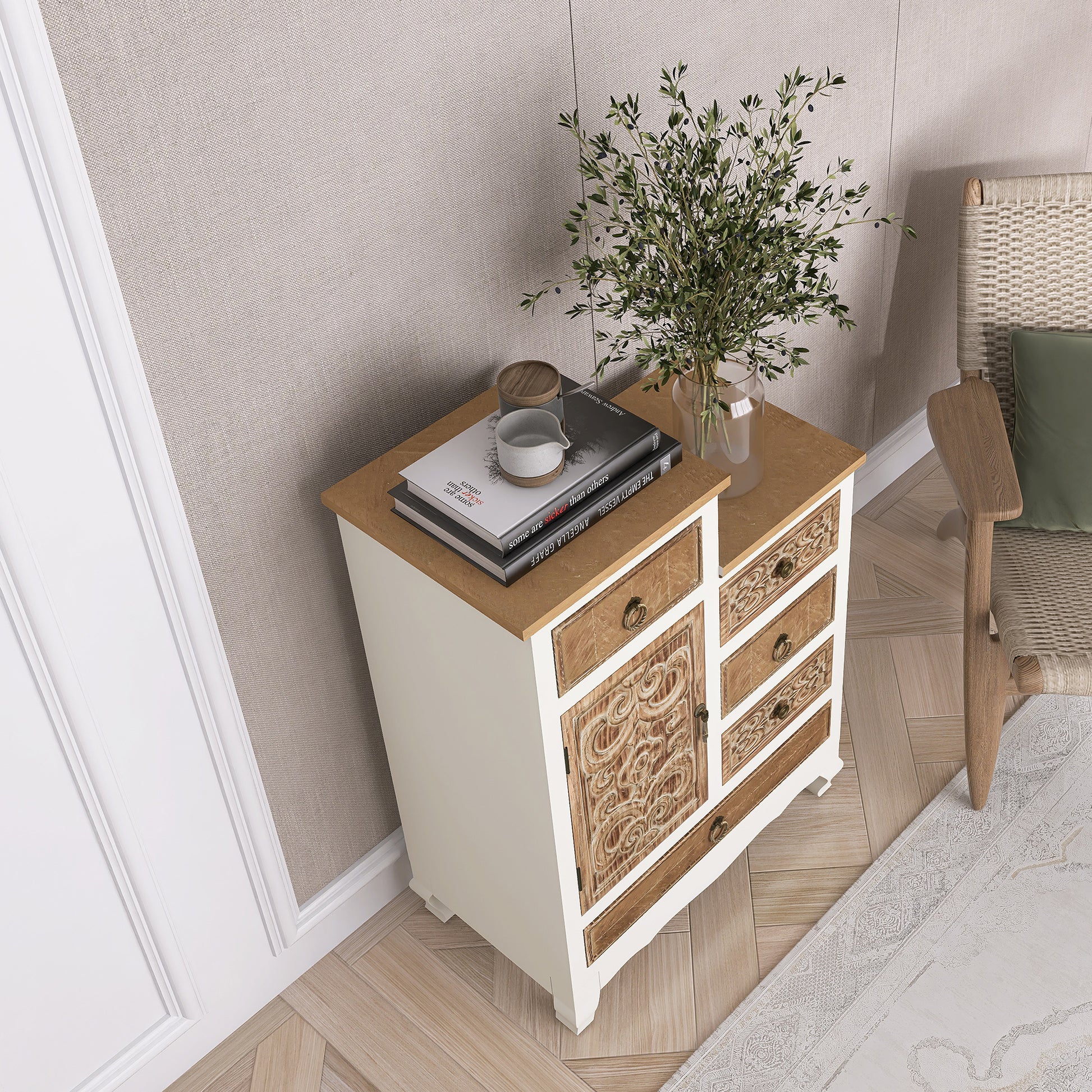 Wooden Cabinet with 5 Drawers and 1 Door; Retro Accent Storage Cabinet for Entryway; Living Room