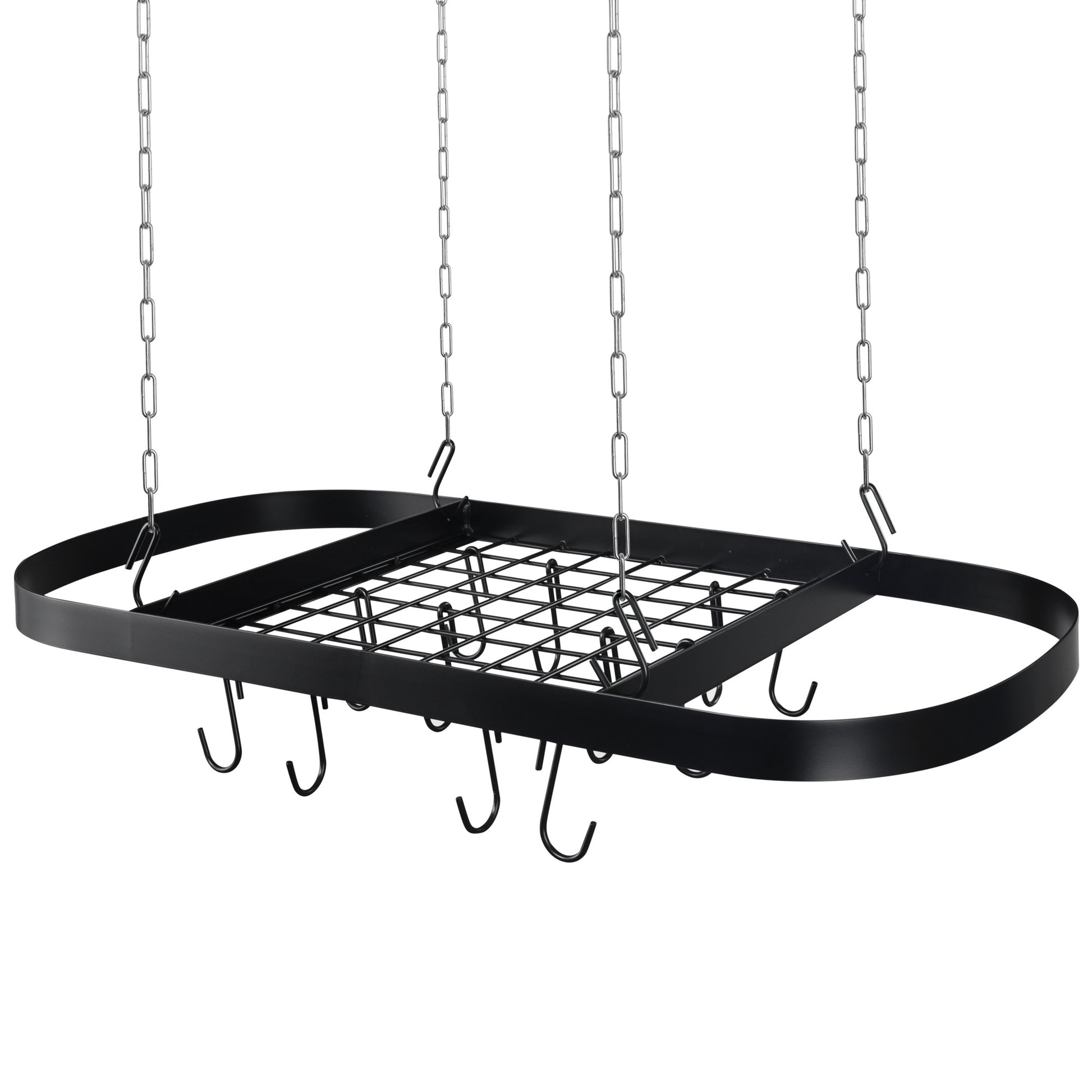 Classic Appearance - Aquaterior Ceiling Mount Oval Cookware Rack presents black color with simple design; shows modern and minimalist style; a stylish storage shelf to decorate your kitchen and keep cookware organized and tidy