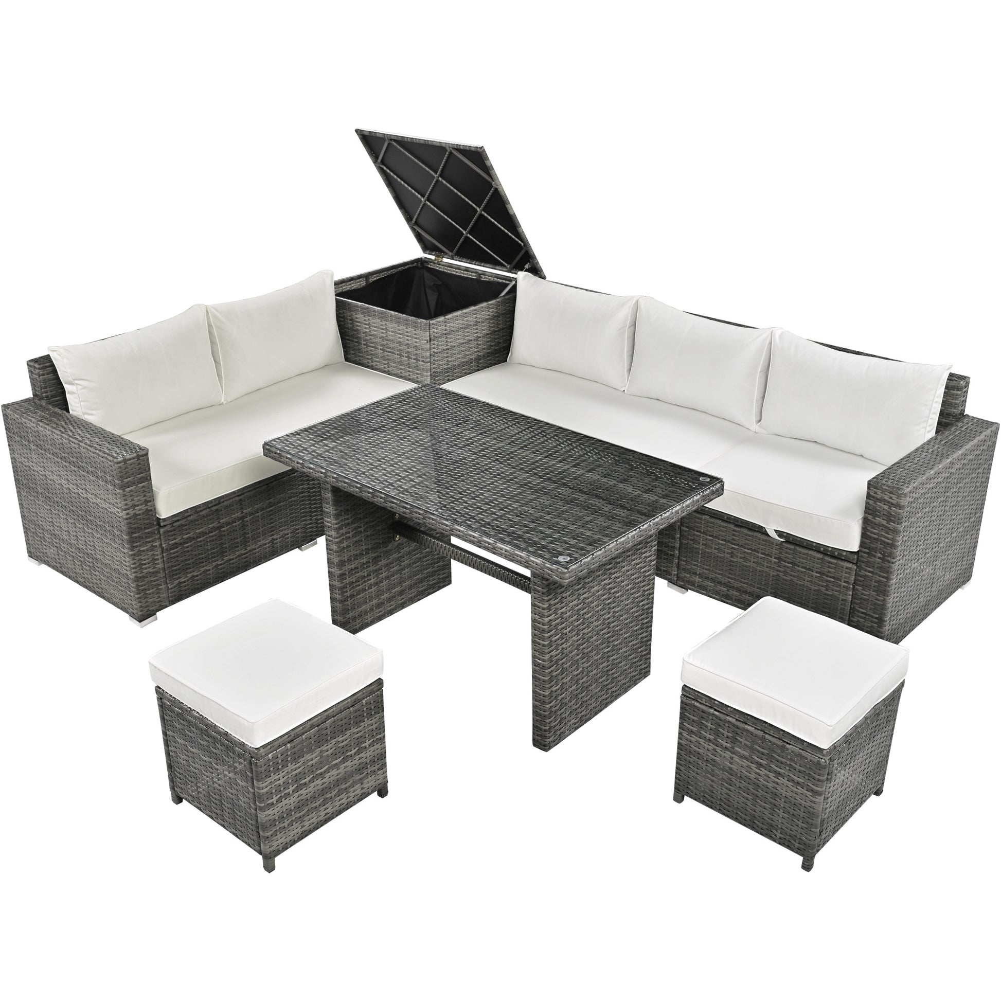 6-piece Outdoor Patio Sofa Set with Storage Box |