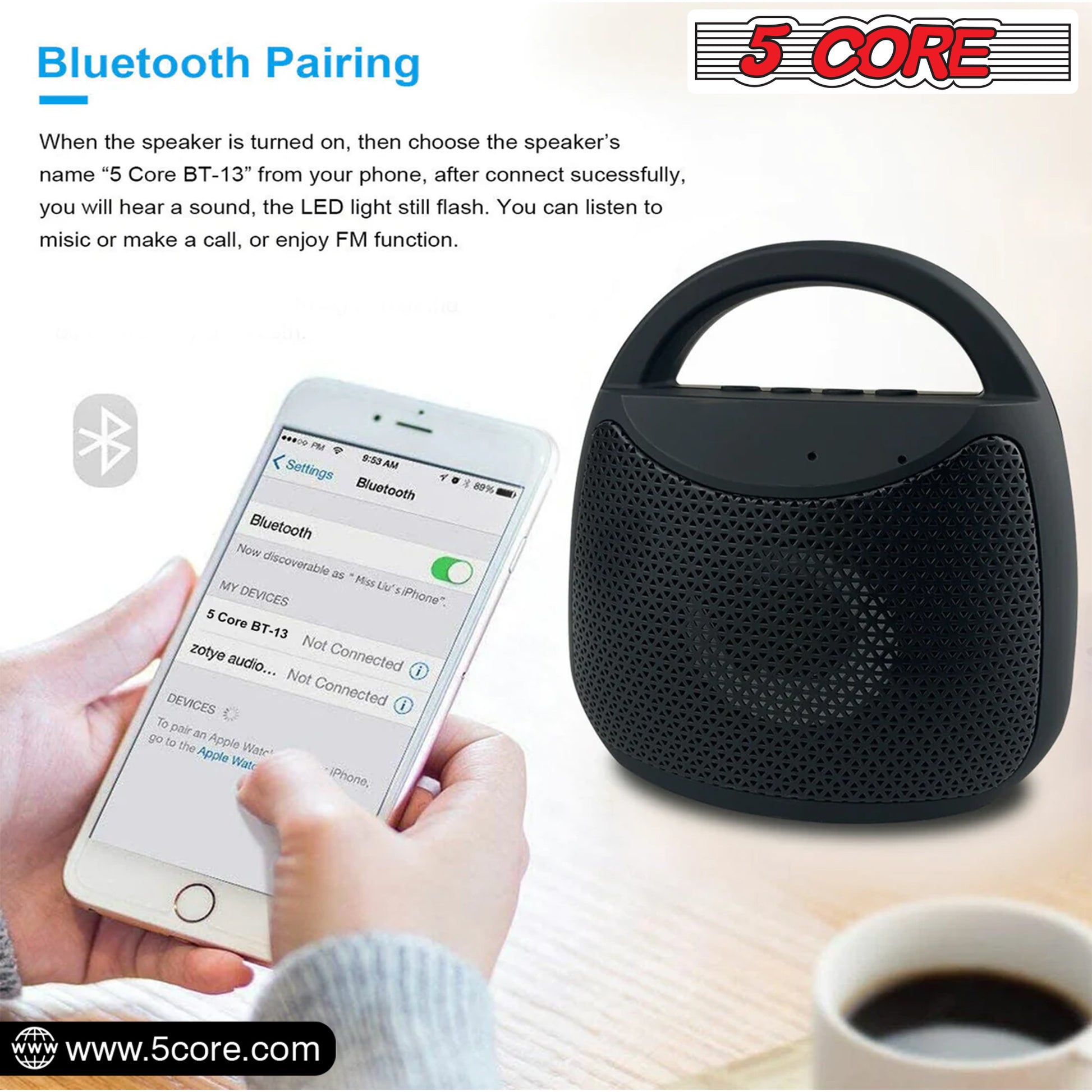 All-Purpose Bluetooth Speaker: The 5 Core portable Bluetooth speakers are perfect for bringing the party with you wherever you go. With a durable and rigid design, you can enjoy up to 5 hours of high-quality audio playtime.